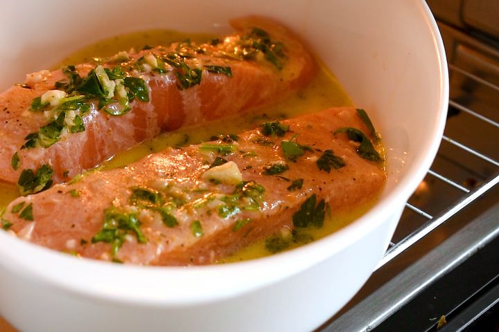 Baked Salmon With Garlic And Dijon Video Natashaskitchen Com
